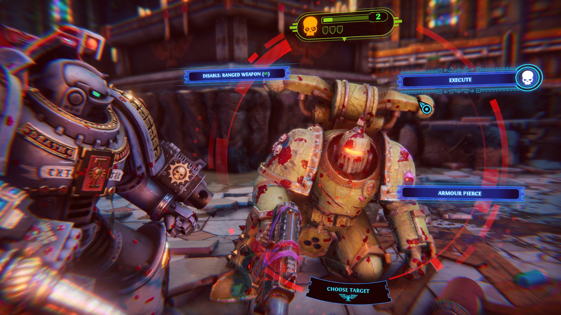 awesome, and chose awesome every time. Enemies - at least the smaller, weaker ones - fly around like ragdolls, statues collapse in a wave of destruction annihilating everything they touch, grenades pulp cultists into a fine mist. As things escalate, new types of both Grey Knights and Nurgle-aligned enemies show up, and they are rendered with loving detail and really get the feel right from what you'd expect from the 40k tabletop and lore. The same is true of the maps you play on, which as SRM mentioned have a lot of inclusions obviously drawn from tabletop terrain pieces, as well as additions of the developers' own to fill the gaps that you wouldn't normally see on a miniature battlefield. If a game that feels like playing through the best aspects of a Black Library novel sounds like something you're interested in, then you'll be well-served here.