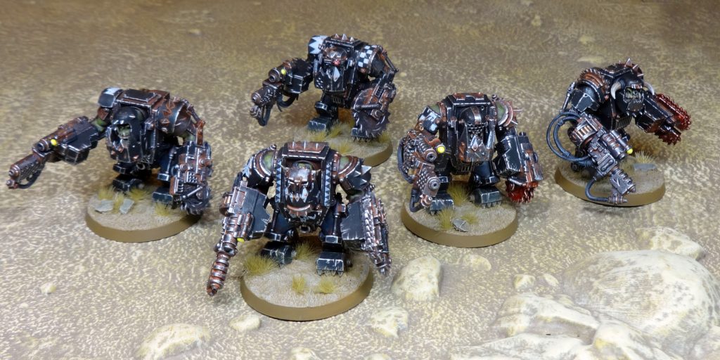 We get it done, and it feels like good progress. I really should paint some orks, though. I crack out the five meganobz I built in 9th edition, since otherwise my only characters have no units to join (joining units wasn't a rule in 9th, but it's essential in 10th). The new kombi-weapon rules mean that their flamethrowers are now effectively an anti-heavy infantry weapon that doesn't hit anything. On top of that, my anti-tank units are no longer effective against tanks. I finish painting the unit so that the army does at least