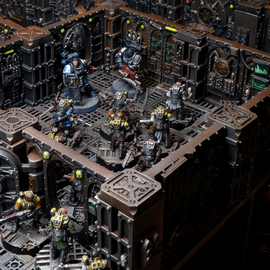 Deathwatch Space Marines battle Genestealer Cults on a space hulk. Credit: Charlie Brassley