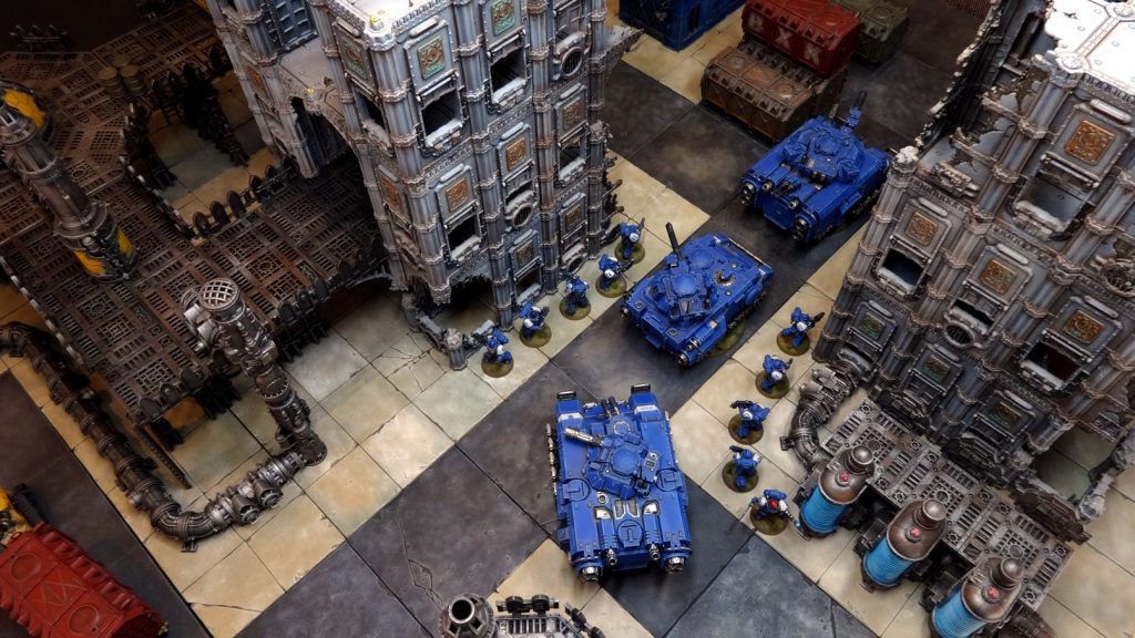 Cobalt Scions Space Marines patrol a manufactorum district. Credit: Charlie Brassley