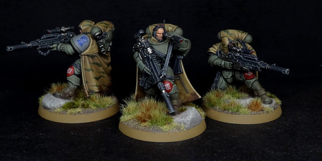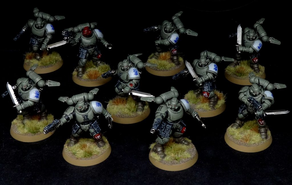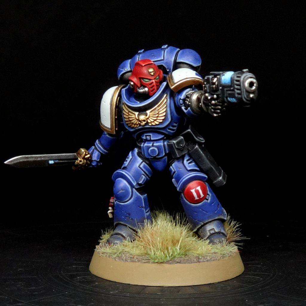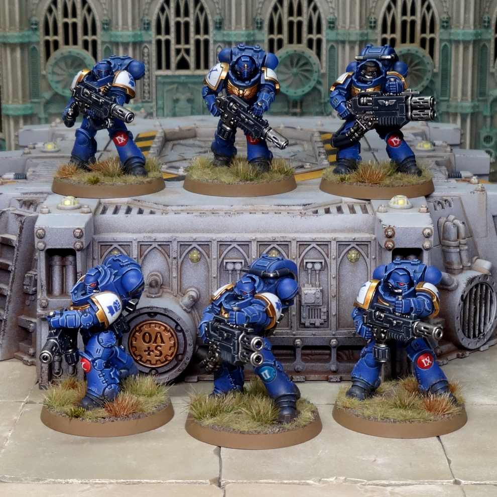 Among the various additions to the Company were a number of Phobos units. I don't use transfers in this army, and there's no moulded shoulder pads for Phobos armour, so that sure did mean a bunch of freehand painting. Fortunately I've gotten used to painting the blue gauntlet (symbolising the Gauntlets of Ultramar).
