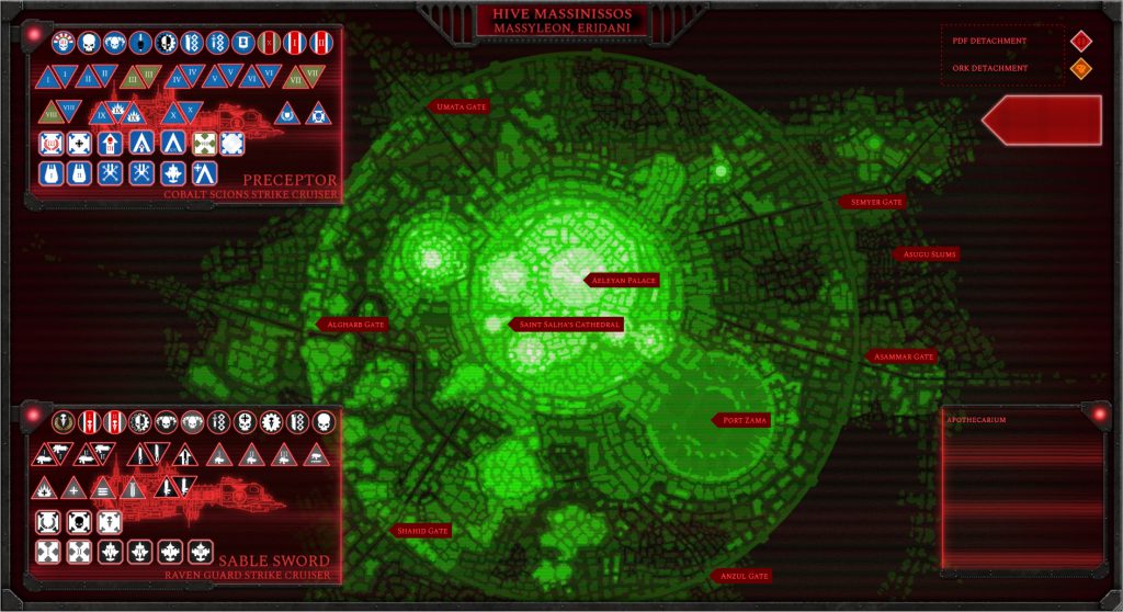 Of course, in order to fight a campaign, it is only right and proper to have an interactive map (some might suggest this is overkill, those people are of course degenerates). So for my final bit of 2025 hobby, I present to you the mostly complete hive city campaign map. Tom and I haven’t quite finished making all the icons needed for his Raven Guard units, and Harvey has more place names to add, but it's basically there now.