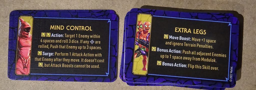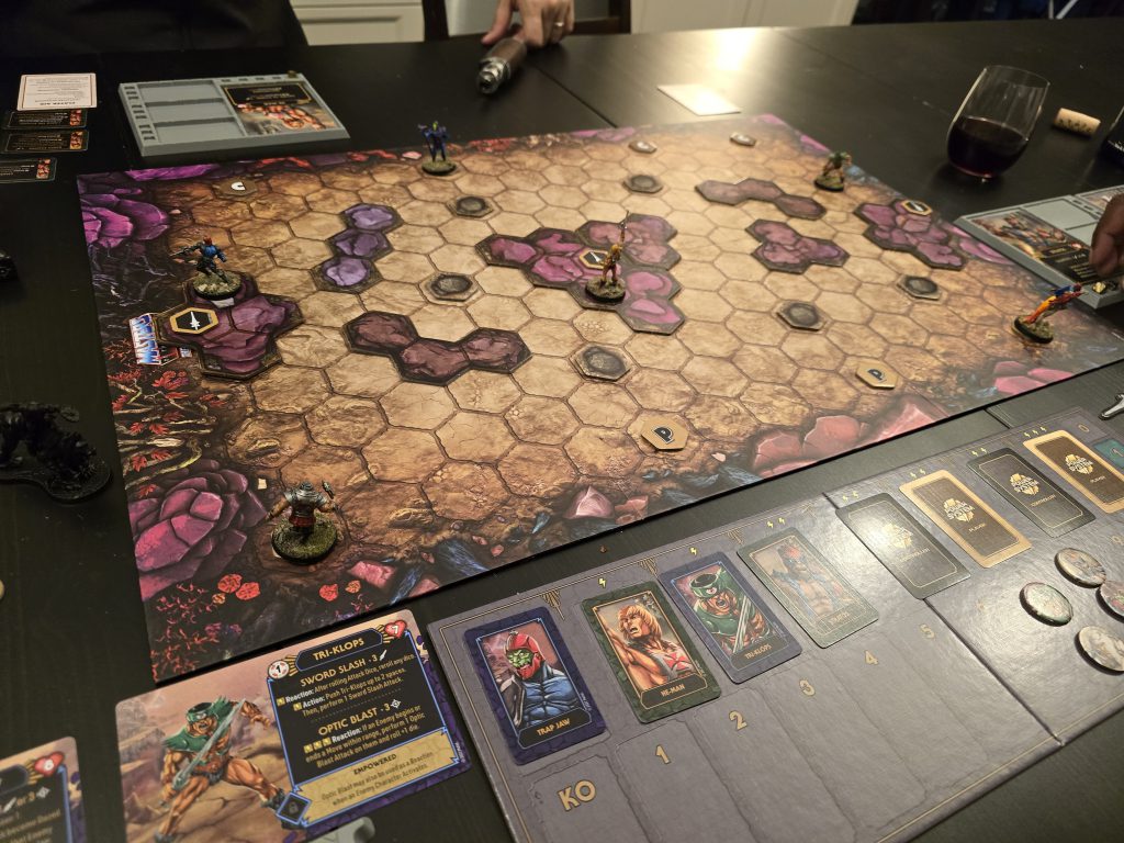 wildly biased and I would never not enjoy playing with He-Man toys. But to give you a feel for the kind of decision points it creates, imagine you’re playing 1 vs 3. The Controller is flying solo and they’ll do whatever they’ll do, but the Players will have 4 activations between the 3 of them, which they need to dictate at the start of the round – meaning someone gets to go twice.