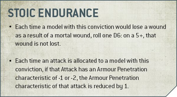 Valorous Heart units get a 5+ to ignore mortal wounds, and can reduce AP by 1 against AP-1 or AP-2 attacks - a nerf to their overall endurance from the previous ignore AP-1 (or AP-2, with an Imagifier) and 6+ to ignore