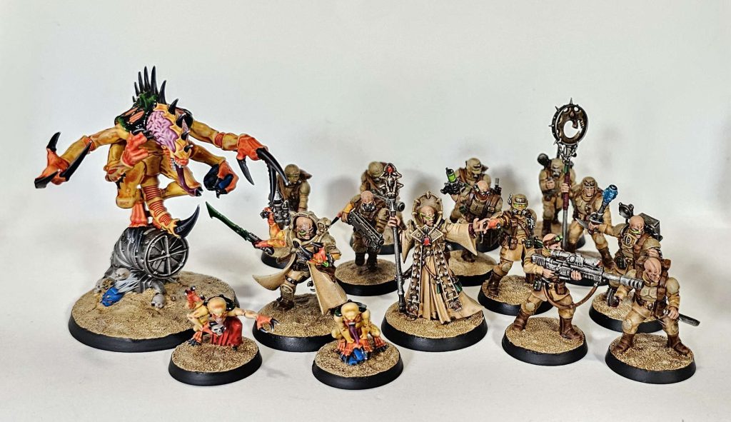 The Xenocreed Congregation puts the focus firmly on the rank-and-file followers of the cult and their spiritual leaders. Neophytes, Acolyte Hybrids and Hybrid Metamorphs cover the former, while the Primus, Magus and Iconward are a particular focus on the latter (though some buffs just work with any Character). This naturally pulls towards an Infantry-heavy force, which means a bit of overlap with the