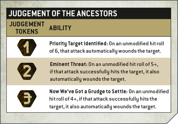 Ancestral Judgement. The Ancestral Judgement is effectively a 3rd subfaction bonus that interacts somehow with Judgement Tokens, making an already powerful mechanic even better.