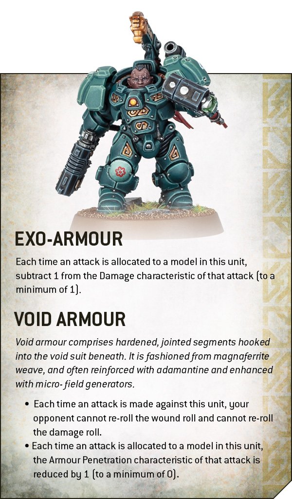 Korvyk's Cuirass gives the bearer a 4++ and reduces AP of incoming attacks by 1 and stacks with Void Armor. So if you want to make an extra tanky character, this looks like a decent option.