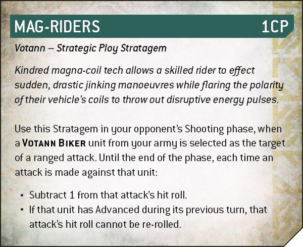 Nomad Strategist is a warlord trait that allows you to redeploy up to 3 units, and like most other redeploys this ability allows you to place these units into strategic reserve for free. This has been good pretty much every time it appears, and seems like a lock for any army using this League. Their relic,