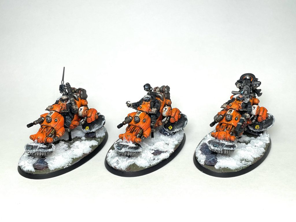 Any of these are good. The bikes are already the fastest ObSec units that anyone has, and being able to move even faster, or move faster and then shoot after doing it, or shoot and then move again, only makes them better at that job. I’m not entirely sure you can’t stack them all, either: move 12” pre-game, then move 14” (your base 12, plus 2), Accelerated Response advance another 12”, go ahead and shoot, then do another 14” move after. Toss those bikes a whopping fifty two inches before your first turn is over, and also still shoot with them. Phenomenal.