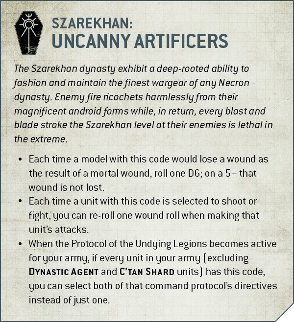 The last point is worth exploring. Up front, the bad news is that the old Cryptek +1 to reanimation aura is gone. It's a shame for Necron players because it would have been