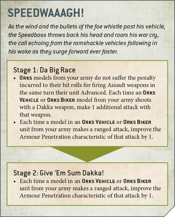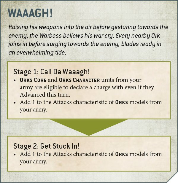 Another change previewed on WarCom in the last couple of weeks, the old Warboss’ Waaagh! Ability has been replaced by two new ones - Waaagh! And Speedwaaagh! - which have similar effects but instead of being an aura are now army-wide, once-per-game abilities with effects that last for two turns.