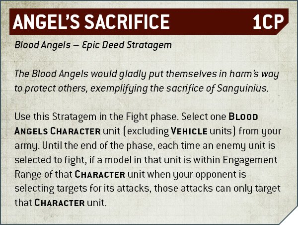 Unbridled Ardour makes its return in the vastly more limited form of being Sanguinary Guard only, but does cost 1CP which is nice (and getting a six inch heroic on these killers is no joke).