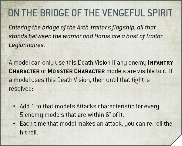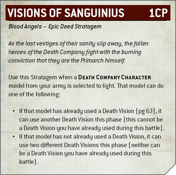 Visions of Sanguinius, again also previewed and allowing you to double-dip on Death Visions and discussed more below in that section.