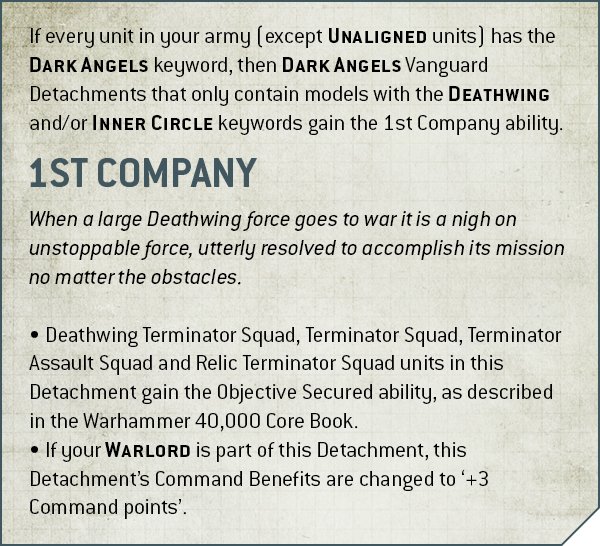 - Special rules for Deathwing and Ravenwing detachments, letting you field powerful themed contingents with special rules to boot.