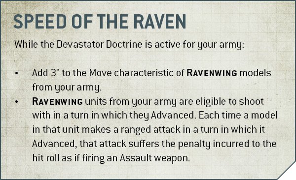 As the game kicks off in Devastator Doctrine, the Ravenwing gains access to the