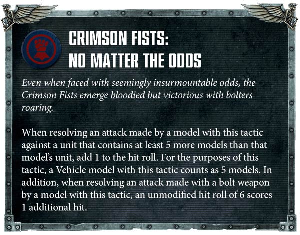 Crimson Fists Hellblasters, ready to liberate. Credit: Corrde