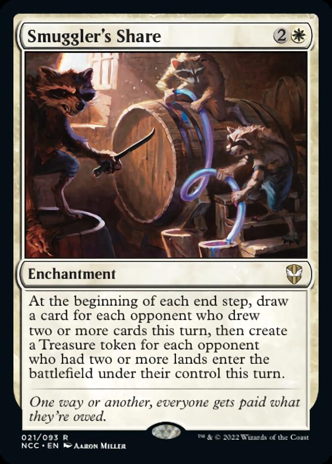 Smuggler's Share really benefit from a strategy like this, if opponents are drawing more you are drawing more. It's a tough line to ride though because you're investing in card draw down the line, and if your opponents' decks are cutthroat and efficient giving them resources now that they'll instantly exploit to end the game will cost you. Depending on your meta that may mean your other opponents will then be wasting resources to stop them, but I find it's tough to rely on your opponents having enough control cards.