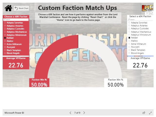 The Faction Breakdown page is probably the 'core' of the tool. This is what everyone comes to see - how is a faction performing in the current meta? Listed within the tool are a few things: