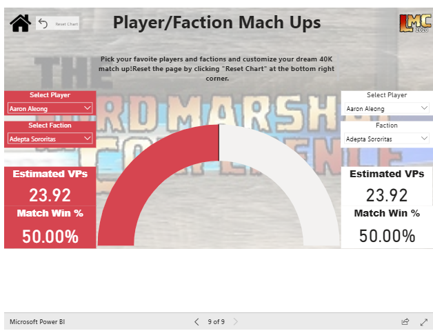 The LMC is truly a remarkable addition to the 40k Community and their latest step with an interactive data visualization tool really shows a commitment to the continued improvement of the community that we can get behind. We note that the data tool itself is an ongoing project and so while there is room for improvement (and Jason is actively and excitedly working on improving this!) it is at a point where it is already insightful and fun to use. We note that tools like this can only get better with more data, and as the season hits its stride in the summer, we expect that the tool will offer a lot of utility to players and TOs alike. Moreover, the custom matchups feature allows a lot fun "what-if" scenarios that we think it will be a blast for matchup previews in the big tournaments. If ESPN can do it, why can't we?