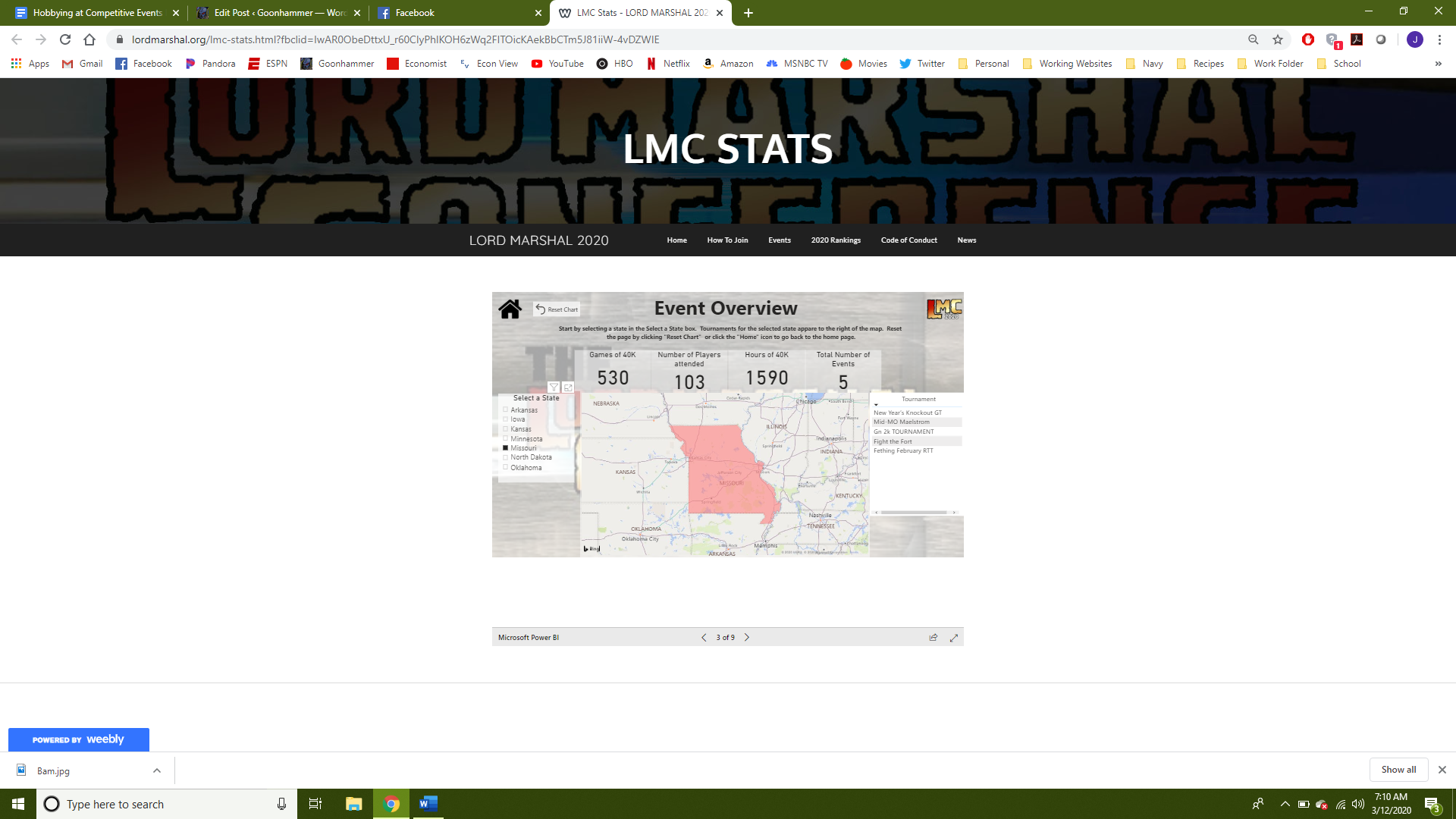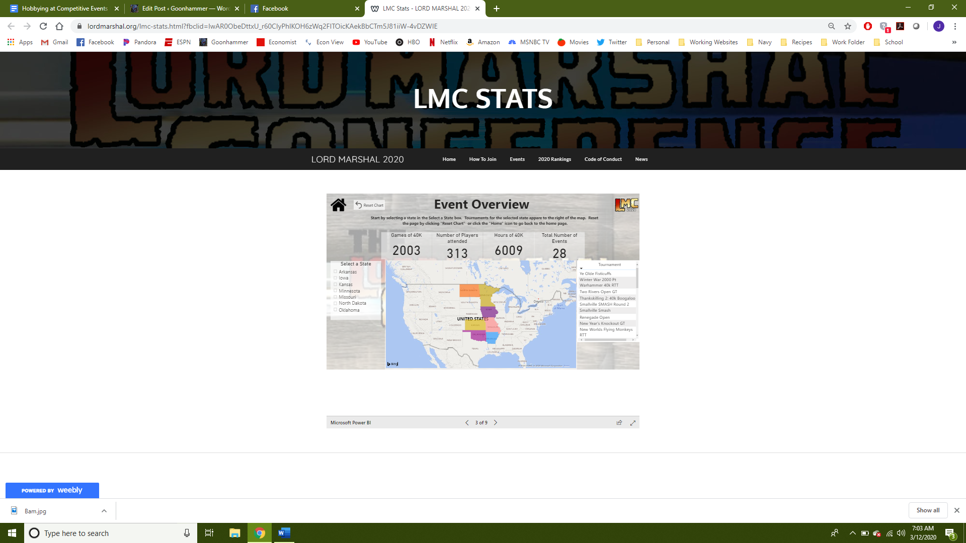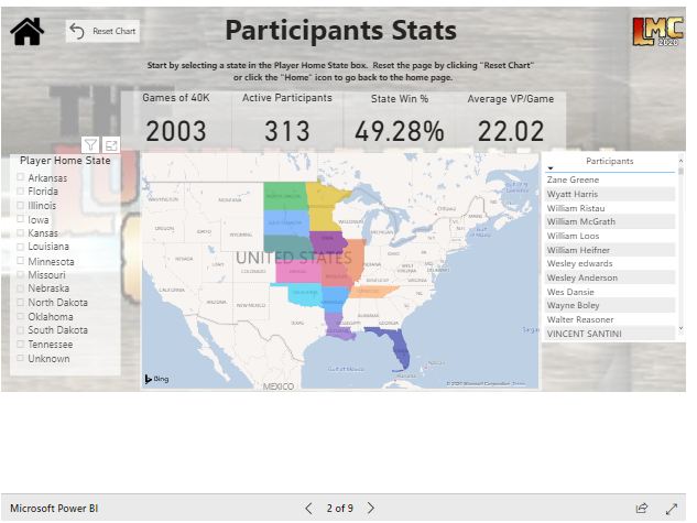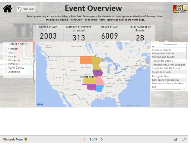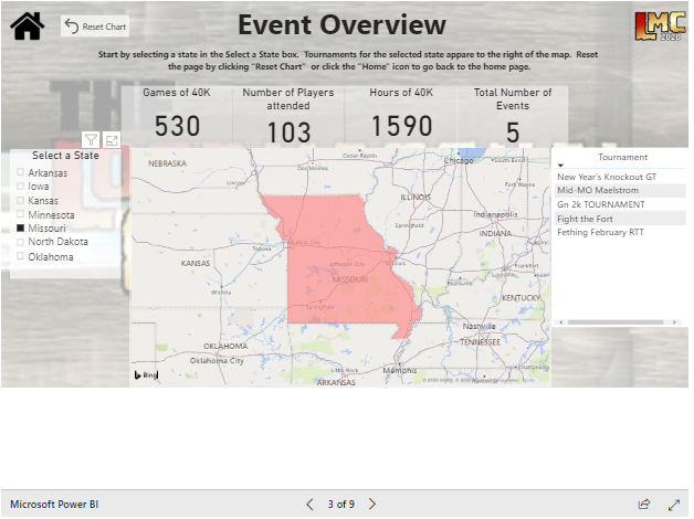 th year the conference extends to 13 states, hundreds of competitive players, and thousands of games. We’ll review the history and current status of the conference, overview the current standings, discuss how you can participate, and then introduce, for the first time, an all-new data tool unique only the LMC! So grab yourself a Pabst, a serving of your favorite hot dish (but it's the Midwest, so please, no spices), pull up a chair and prepare yourself for the next evolution of competitive 40k!