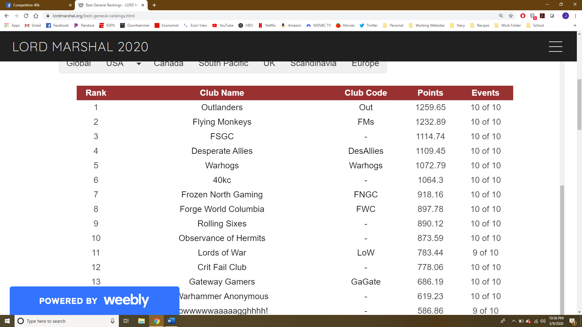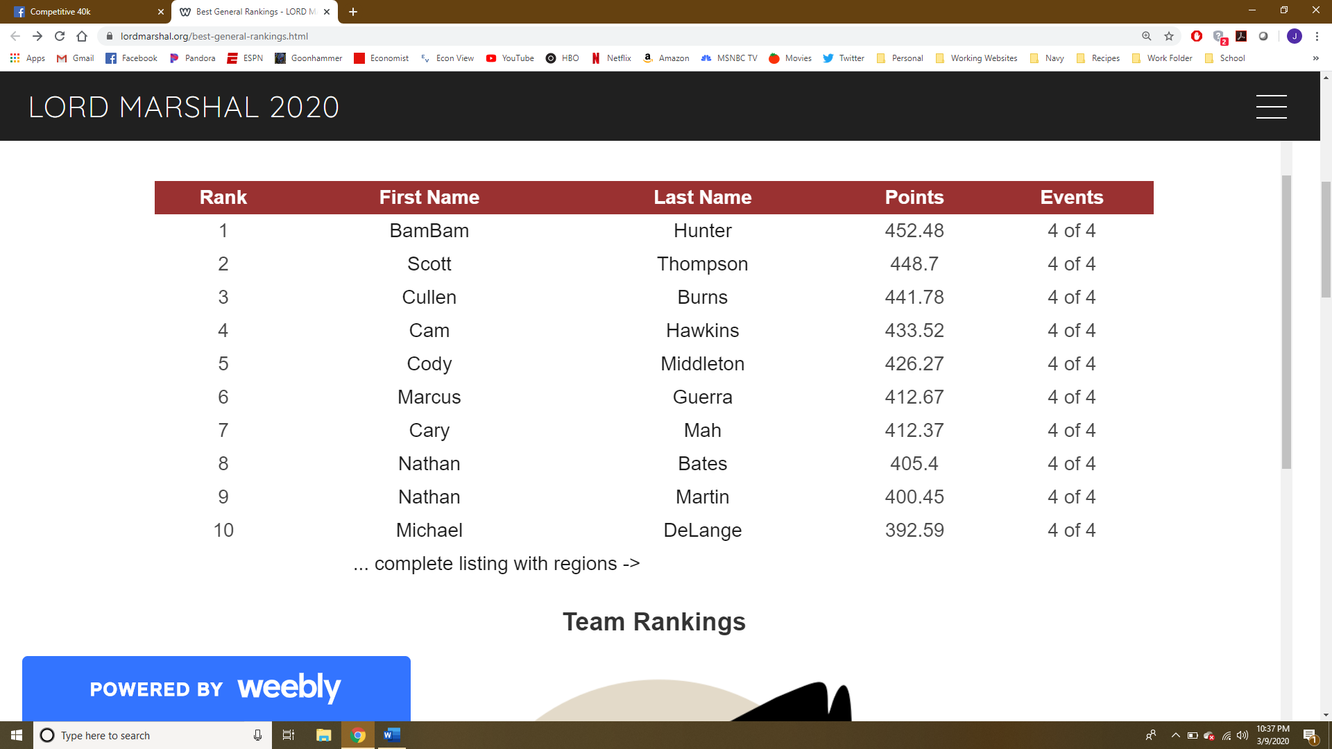 LMC Top Teams as of March 10th