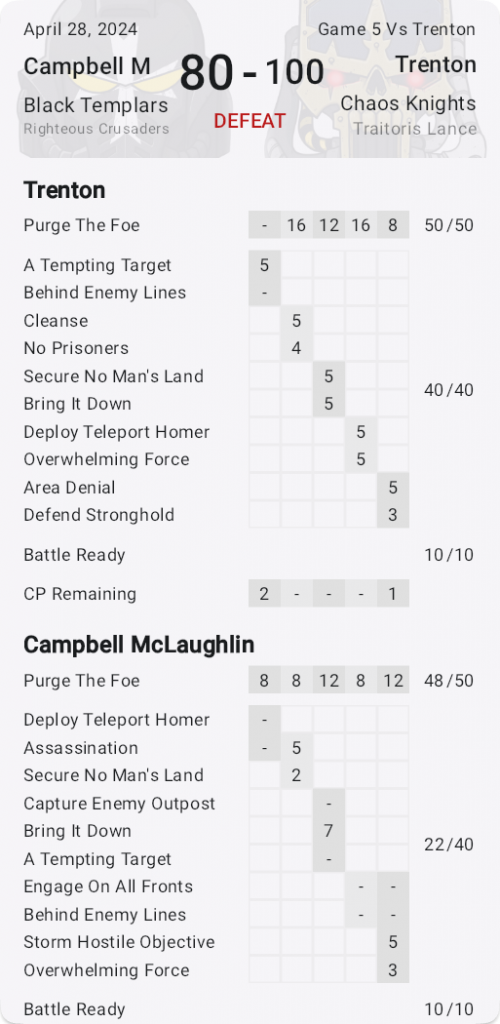 - Righteous Black Templars vs Chaos Knights at Squig City