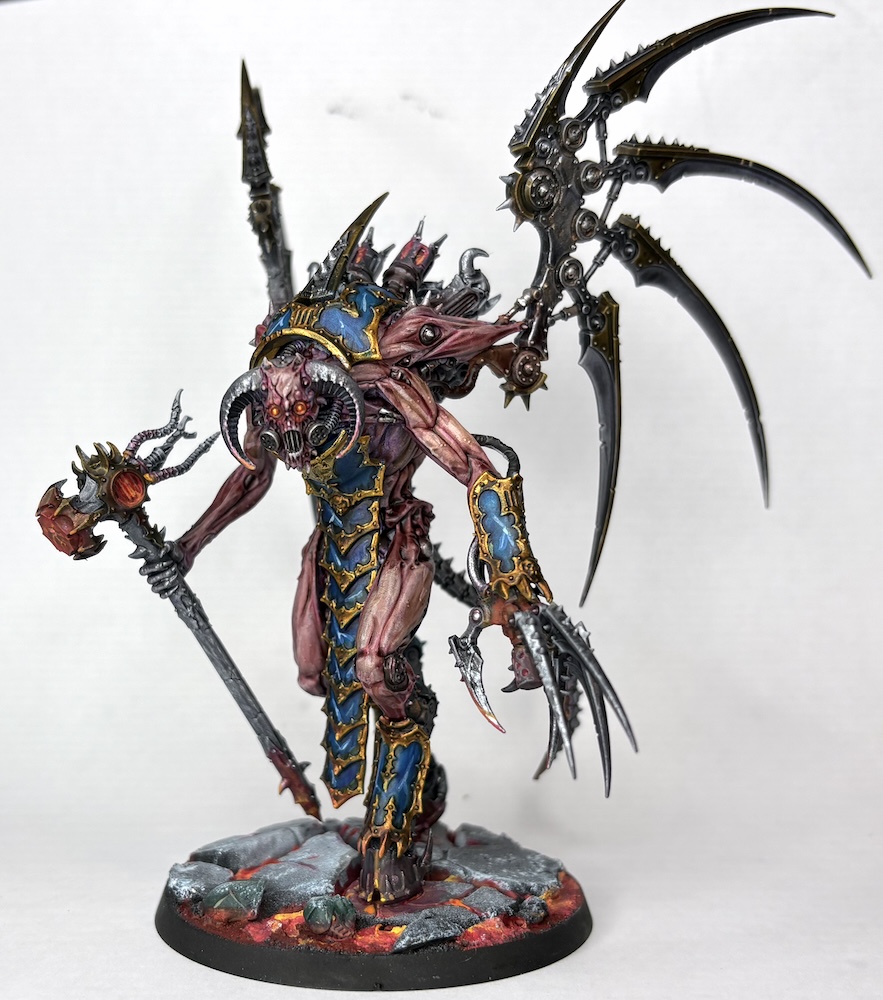 Sometimes you just want to punt foes into the stratosphere. I'm not quite sure what horrors Nelson has encountered in the past to make him want access to D4 sweep attacks from Skarbrand and the Bloodthirster, but he's got them here. Outside that, it's the standard strong anvil from a Gift GUO, and the fantastic scoring of Flesh Hounds to get things done. Also, solo Syll'Esske is back. I'm not wholly convinced they should ever have left, so good choice there from Nelson.