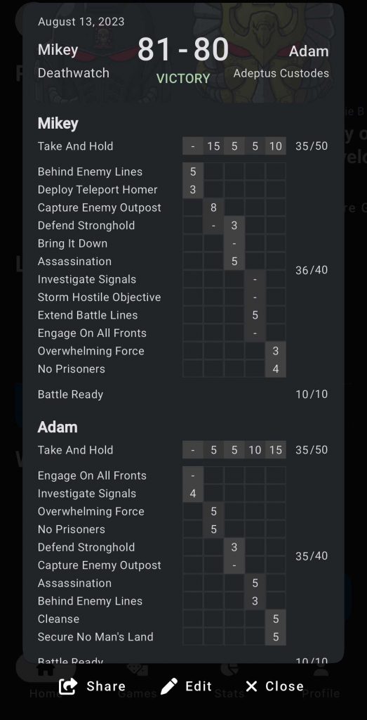 100-84 Victory vs Ethan Novik - Adeptus Custodes.