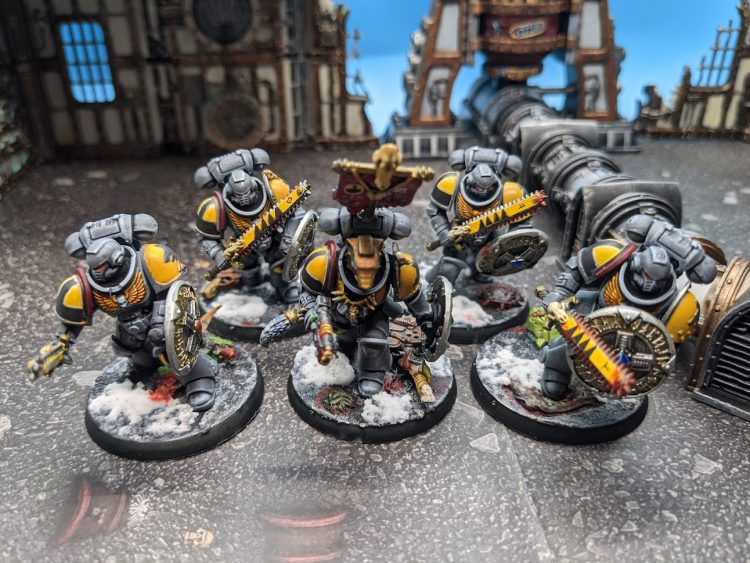 Plasma Inceptors with Chapter Master are absurdly lethal into anything that doesn't have damage reduction, and honestly still OK there, because they can jsut fire D1 shots without worrying about re-rolls - which can go on either of the big melta units instead. This list is brutal at range, and the tools it's using for that are just that much harder to drop than they would be in most Marine lists, maximising the chance of them living through to get the Apothecary's attention. They can also, sometimes, make use of Devout Push for a very narrow Fire and Fade style effect to get back behind cover if an objective is conveniently placed.