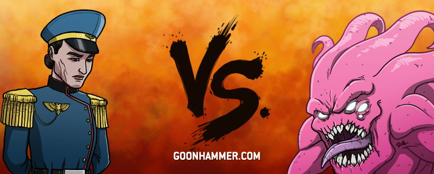 As much as it pains me to say it, its one or two of the horrible new tricks that guard got in their book that are absent here that are likely to have a big say in this match up against a brutal forward pressure Daemons build. Nine Beasts of Nurgle is an enormous amount of intervening objective harassment that requires irritating levels of firepower to remove, and supporting Brigands can throw down insufferable anti-infantry firepower. Most alarming of all is the Indomitable Bloodthirster, bane of any list dependent on one or two phases for damage, leading the charge in Logan's melee contingent. Astra Militarum do have a ready made piece of tech for this 'orrible piece of work in the form of the Finial of Nemrodesh 1st, with its complete shut down of much of 9ths defensive jank. As it is, this isn't present for the guard in this list, and neither is the teleporting trickery of the Barbicant's Key. This means that whilst the Guard can certainly control the delivery options available to the Daemons via Remain Vigilant, and they will take an enormous toll on the neverborn at range as they approach, they lack an obvious way of toppling the Bloodthirster before it makes an awful mess, and the Daemons will have an easier time managing the dropping in of small Scions squads.