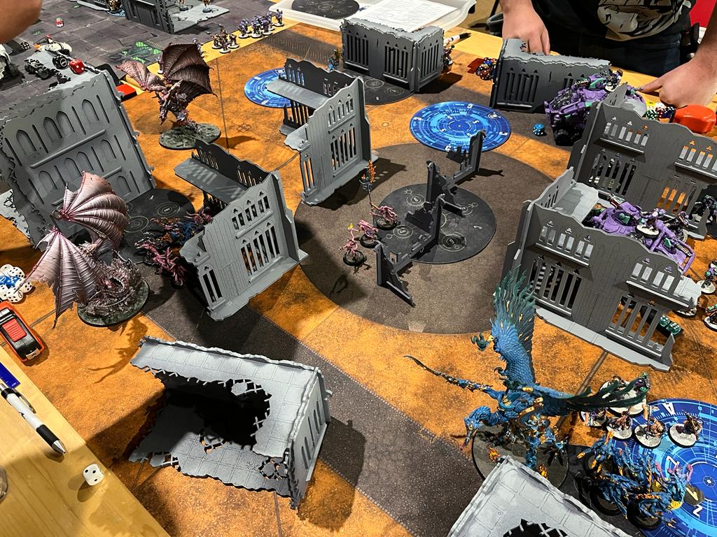 That should be enough to force the Thousand Sons onto the offensive and into the kind of game the Votann want. Their passive scoring options here are significantly less good than normal, as they don't have good numbers of targets for Sorcerous Prowess, are a bit short of spare Characters for Actions, and playing Banners is going to require either committing lots of models onto objectives to stop a bike unit de-bannering it, which is still the right play, but will help the Votann with their goal of killing stuff. Having lots of Flamers certainly helps for getting aggressive, and there's certainly a version of this game where Chaos can sweep up all the Votann's ObSec quickly enough that they can't pull off the late game shenanigans they need, and I think thanks to the Scouring this is very much anyone's game rather than favouring the Sons as most missions would. It looks like the upside of the mission was enough for the Votann to lay claim to victory.