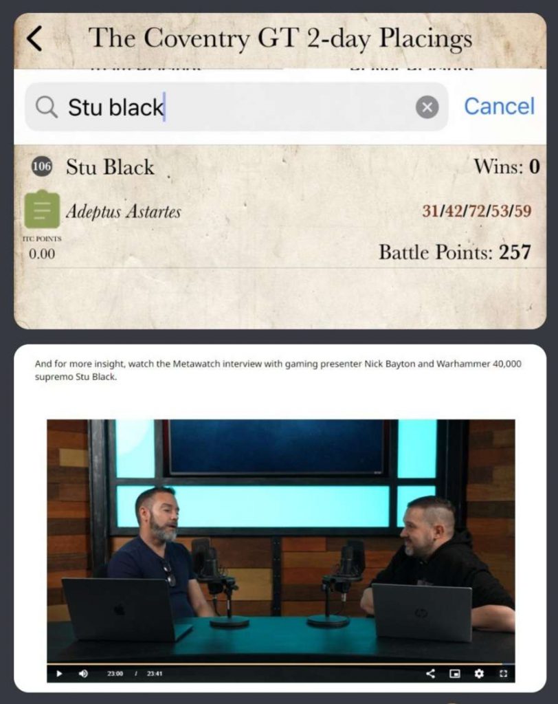 - 4th - Stuart Trainer - Genestealer Cult: Another Myriad Cult GSC list, similar to Innes Wilsons in that it is running around with 6+++ on the bikes, mini-transhuman on the troops and +1 to pile in/consolidate and it ignores hit modifiers on its industrial weapons.