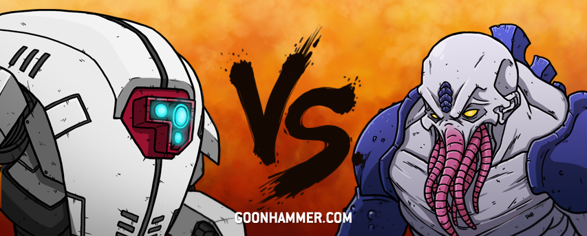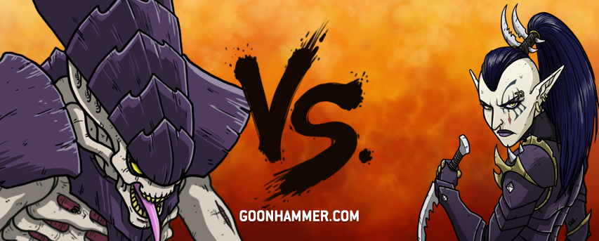 A clash of powerhouses here, all the nastiest new monsters of the Tyranid book up against a lethal wall of mobile Tau shooting. No mucking about on that front, just lots of Crisis suits with good access to re-rolls, able to zip round the board and obliterate anything standing out in the open. The Tyranid army is, of course, no slouch at shooting either, with two Harpies flying around and a couple of Carnifexes hauling around guns, but where it really gets mean is if you're close enough for the Maleceptors to start melting some faces, and the Tyrants to chop you up.