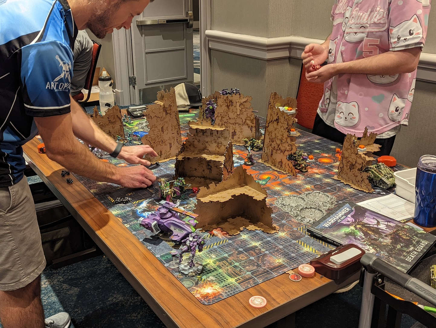 As Chaos, I think your goal here is to force the Drukhari to hesitate too long in dealing with the big blocks, and then translate the wound-capped characters in the list (something Drukhari struggle with) into insurmountable momentum from there. If the Drukhari can be kept on the backfoot their Secondaries start to look pretty dicey, whereas Specimens for the Spider and The Long War both look great if the game plays out that way. That feels like enough, taken with everything else, to provide Chaos with the edge, and they were able to leverage this to take victory.