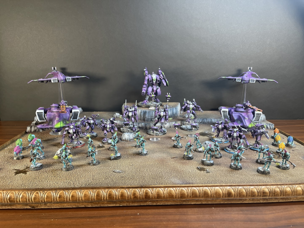 Frasier Parry - Harlequins: Dark Saedath spamming foot Troupes, with a big Voidweaver unit at the back.