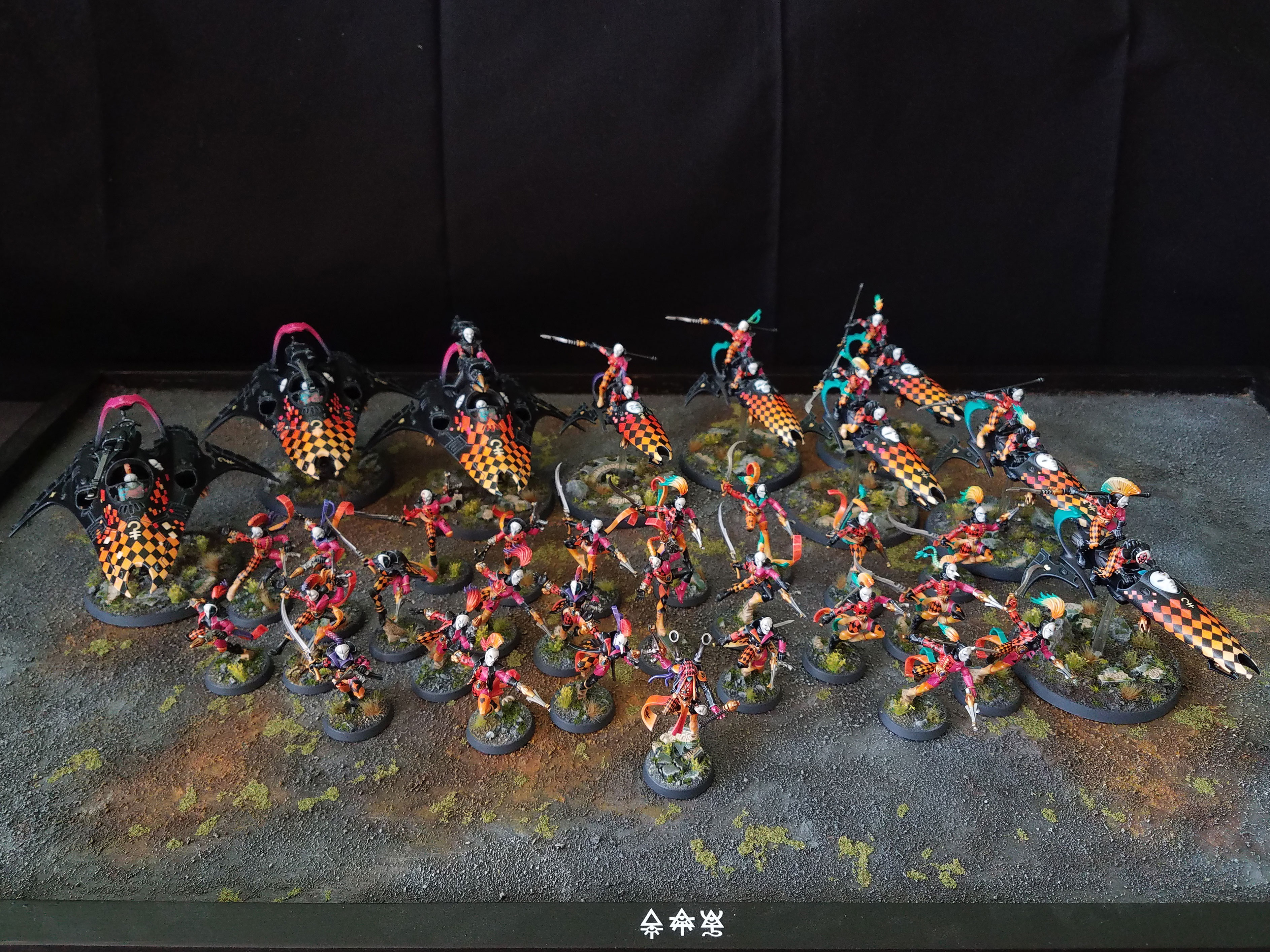 Troupe Master [4 PL, 70pts, -1CP]: Choreographer of War, Darkness' Bite, Fusion Pistol [5pts], Harlequin's Blade, Plasma Grenades, Stratagem: Pivotal Role [-1CP], The Twilight Fang