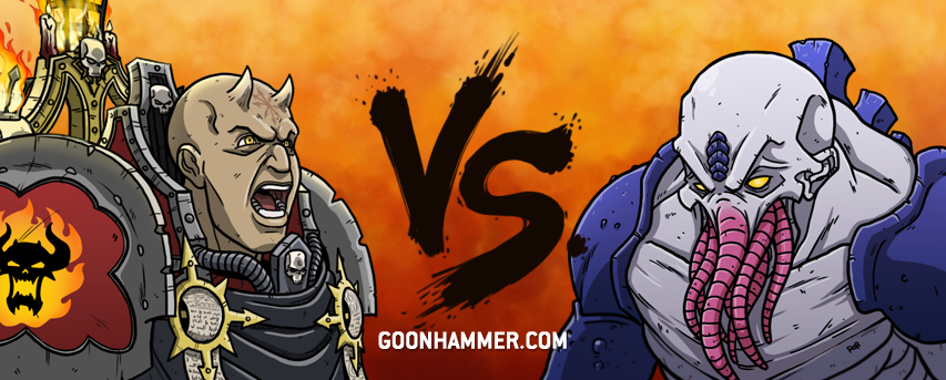 On to our second showdown, and it's another one that gets more even the longer you look at it. Certainly on an initial glance I wasn't convinced that the Chaos Space Marines could survive the sheer number of bodies and shots that the Cults present here, but they've actually got a lot going for them. Firstly, the mission is helpful - it makes it easier to screen out the Cults, much harder for the cult to aim to seriously tank primary, and has an objective map that broadens secondary options a bit. Good start. Second, there's some decent anti-horde in the Word Bearers list - the Flamer unit is obviously gold, but the Terminators and Possessed both do nasty things to whatever they touch too. Thirdly, the list is very herohammer heavy, and the main unit that's going to be out in the open is the Terminators, which are a tough one for a lot of the Cult toys to handle. Not only does that create a risk of a whiff into the Terminators followed by tragic consequences, it means that if the Terminators do go down there's at least a second wave of nasty characters to rock into combat and start racking up a body count. It's notable that the GSC list is on a pure horde plan, with very little in the way of counter-charge tools, so if they start getting multiple units tagged at once things get notably tough for them.