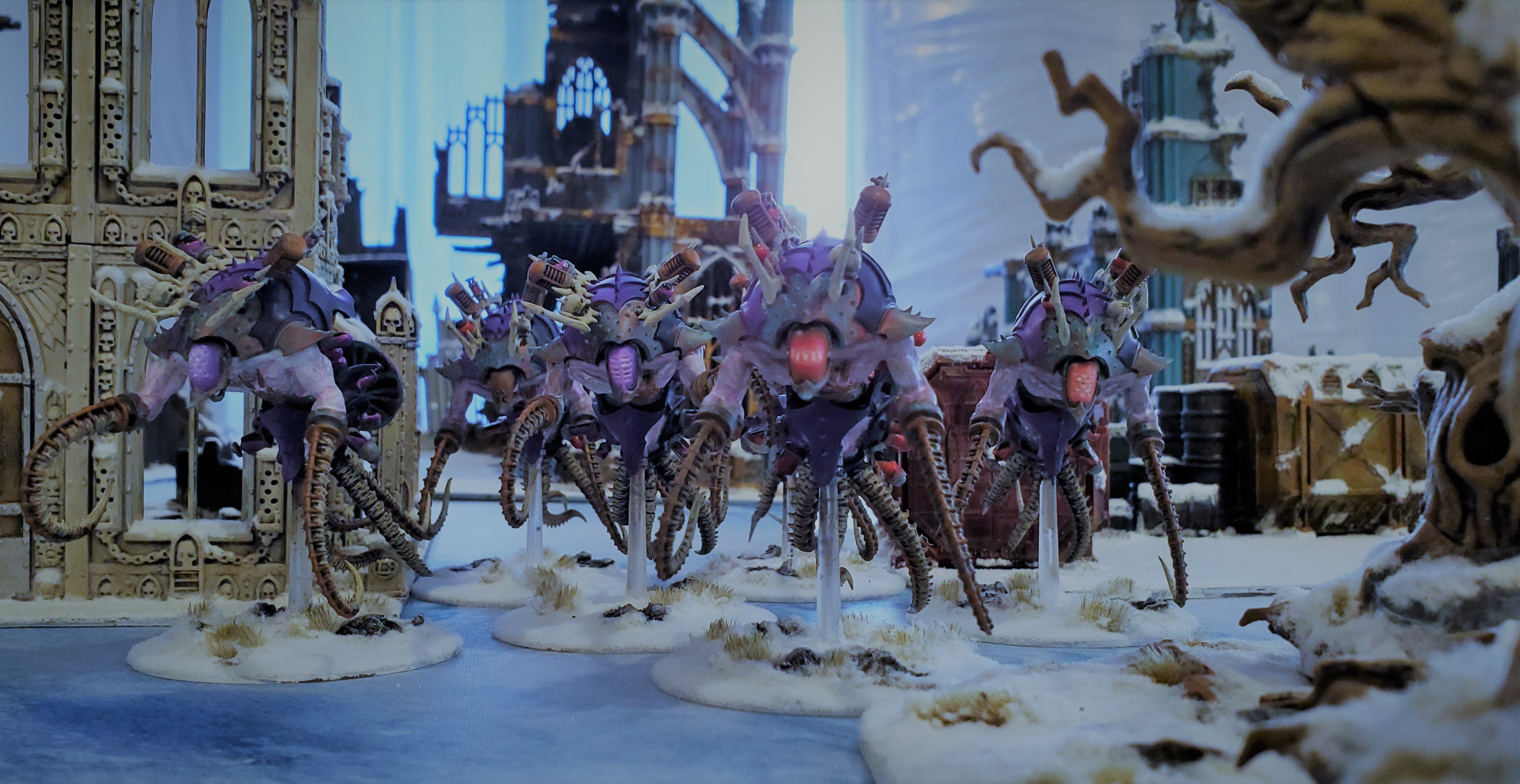 - Typhus - Harlequins: Frozen Stars with a bunch of boats and some big foot troupes as well - another list that's an utter nightmare to deal with on heavy terrain setups.