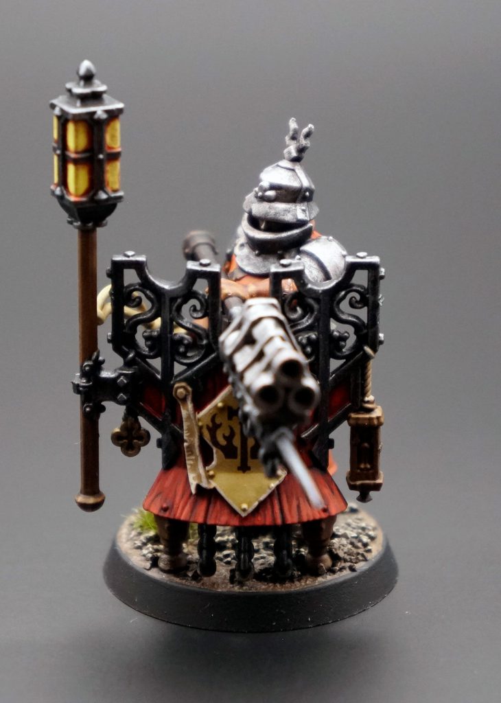 The Fusil Major can designate a target they shot to receive +1 to be hit by the other shooting units (namely the Fusiliers and Steam Tank Commander) which has obvious knock off on effects for the list. He can shoot 24" away so as long as a unit is in the open, the world is his oyster.