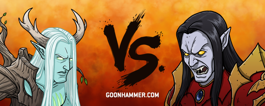 This is a very close fight, which is only decided by a hair's length. Both armies have a lot of potential to move around, with Sylvaneth having their teleporting trees and Soulblight having some deep strike but also recursion. The trick is that the Soulblight units aren't very durable, there's just a lot of 'em. Sylvaneth meanwhile have a lot more punch on the charge, meaning Soulblight must carefully manage their debuffs and respond at the right time to get decent damage in.
