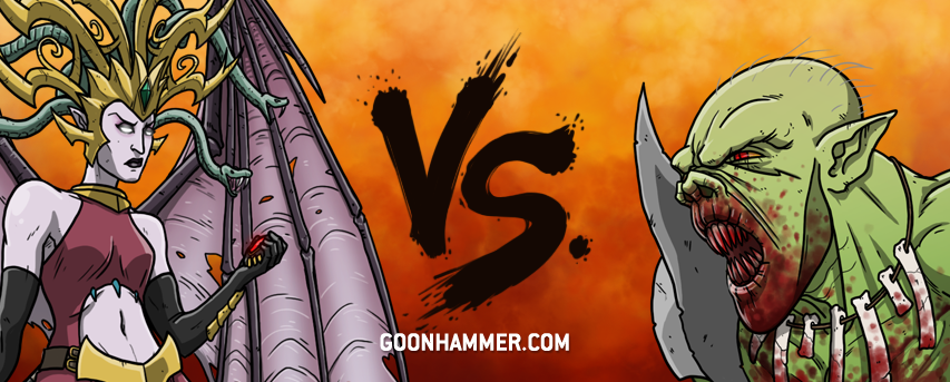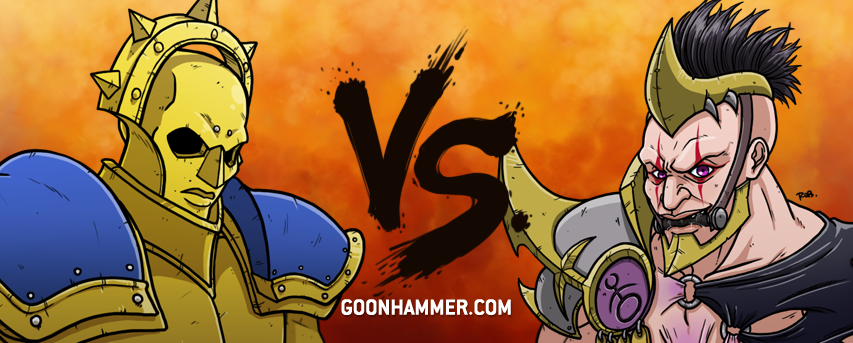 This is pretty much a slam dunk for Flesh-Eater Courts. Daughters of Khaine really need to be on the charge, as they lack the defensive abilities to stand their ground. Meanwhile, Flesh-eater courts love when you charge them. Cryptguard get Anti-Charge and can eschew their wards for First Strike, and if they get in that first swing, they probably don't need to worry about being hit back. Once the dust settles, the actual hammers of Ushoran and the Terrorgheists can swarm in and tear the army to pieces. About the only thing they have to worry about is keeping the Shadow Queen busy, and there's enough bodies to do that quite handedly.