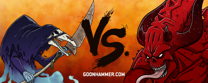 This battle is basically going to come down to who gets the charges they want first. Nighthaunt as an army desperately want to charge to get their debuffs off, while the Khorne army's Blood Thirsters and Skullreapers want to charge first. Khorne has some screens in the form of the furies, while the Mymourn Banshees can play the same role for Nighthaunt, since their services of eating up spells is not required.