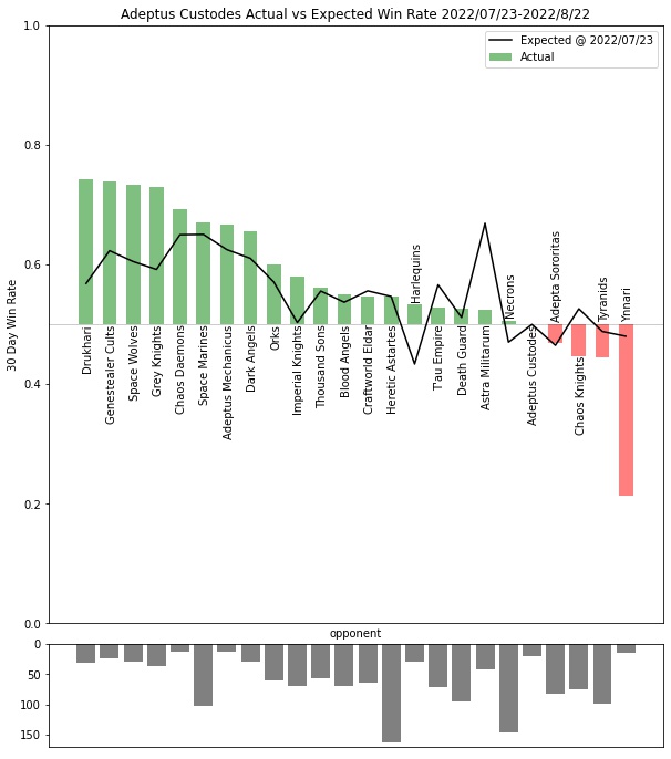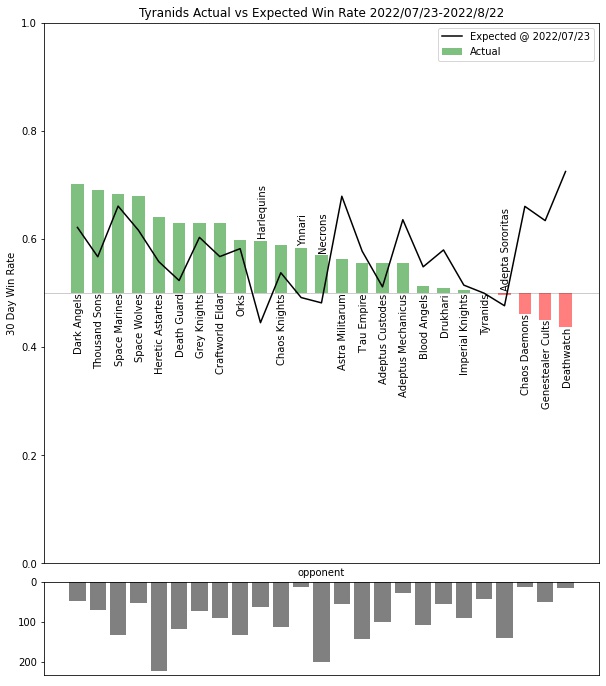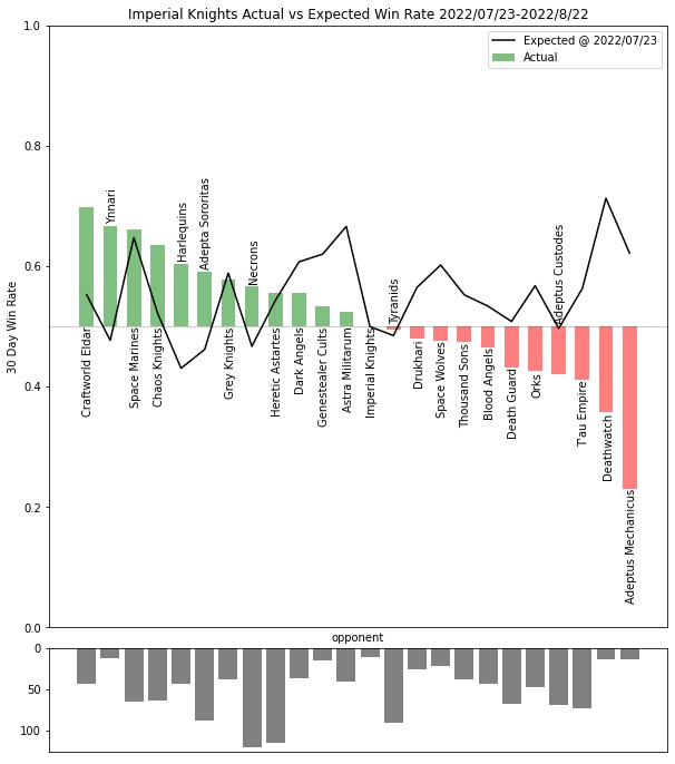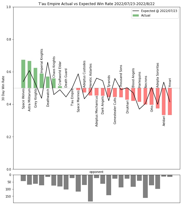 statistics. Rob and the stats team do a fantastic job of collating and presenting stats on faction performance in the regular Meta Analyses and on 40kstats.com, drawing both from tournaments and data from the ITC battles app. This helps inject a bit more rigour on top of my vibes-based ratings. Notably, a faction performing strongly or weakly in the stats can help us decide on which tier borderline cases fall into, while if a faction’s statistical performance diverges wildly from where it’s been placed it can prompt us to take a closer look at tournament results – maybe a specific bad matchup is pushing numbers down, or there’s a hot new build we haven’t encountered yet.