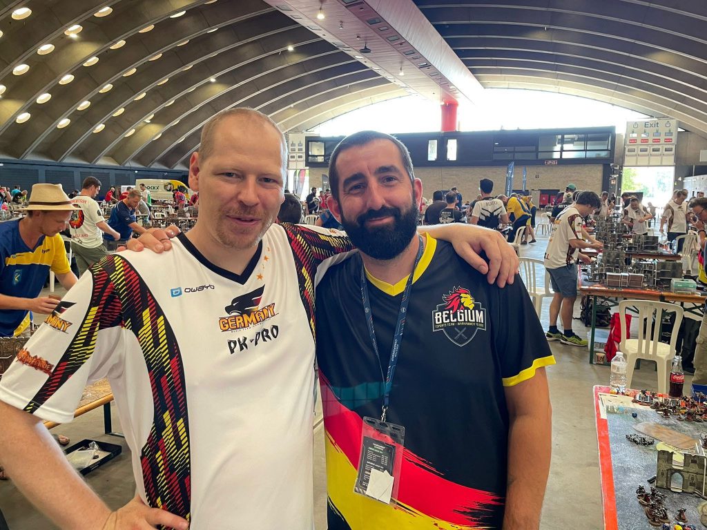 Even though the mood in the team was a bit depressed due to the loss, we were able to pickourselves up again quickly. When we learned that Belgium would be our next opponent, we were a little worried. Belgium had drawn against Poland in the group stage. But after the pairing, we were already in good spirits again, because according to our assessments, we saw ourselves with an advantage of +12 points. In this round, I was allowed to play against Tom Adriany, who was not only the captain of the Belgian team, but also a major contributor to the organisation of the WTC. Tom was allowed to pilot the following Chaos Knights:
