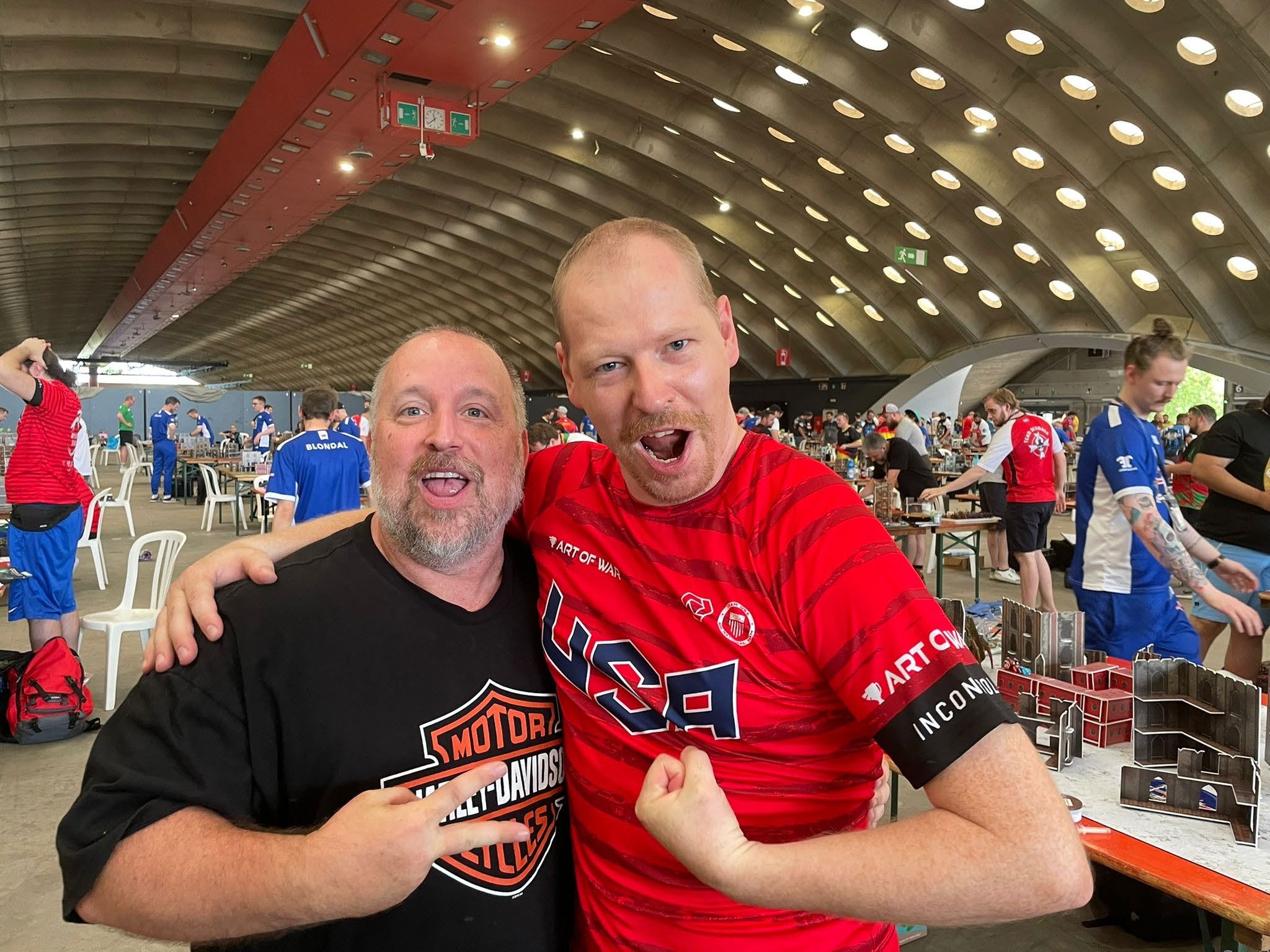 This resulted in both of us being so severely weakened that we could hardly stop the opponent from scoring. The game ended with a 10:10 score, which exceeded my expectations. At the same time, I had to learn that we lost the coinflip, which meant that our Tau had to give up 20 points. But on almost all the other tables, we could score a little bit more points, so that the match was decided on the last table. We were still 6 points short of a draw and at this point our Drukhari was still playing against Richard Siegler with his Admech. Our player was still so deep in the game that he didn't know what was happening to him and when the final result was 8:12 for America we were overjoyed. We