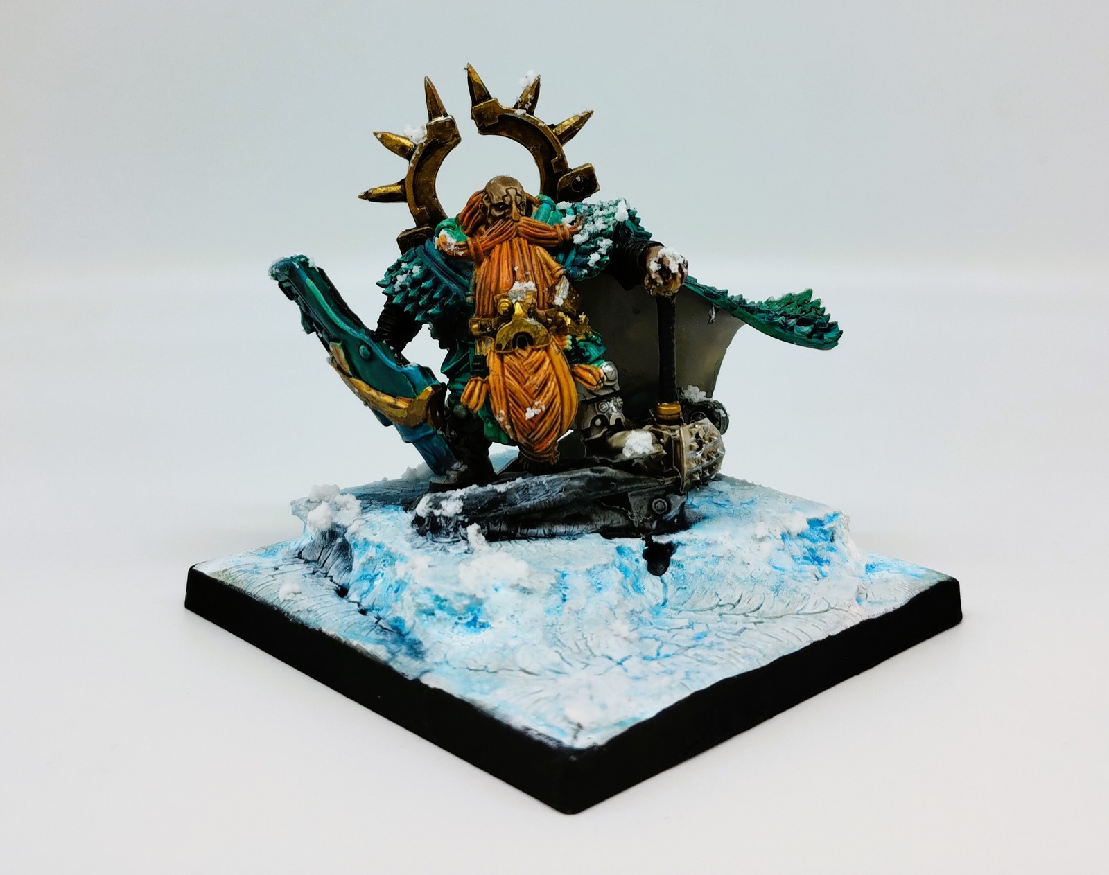 There are two models and I think that the win here goes overwhelmingly to the Dweghom. The Stone Faced King is so good that it genuinely has me taking a second look at the Dweghom faction. He’s the first model Para Bellum have made that takes advantage of characters being on a stand of their own and he’s an absolute unit. Dominating presence, powerful stance, you can build him with the back banner totem off and it looks just as good. Smash hit.