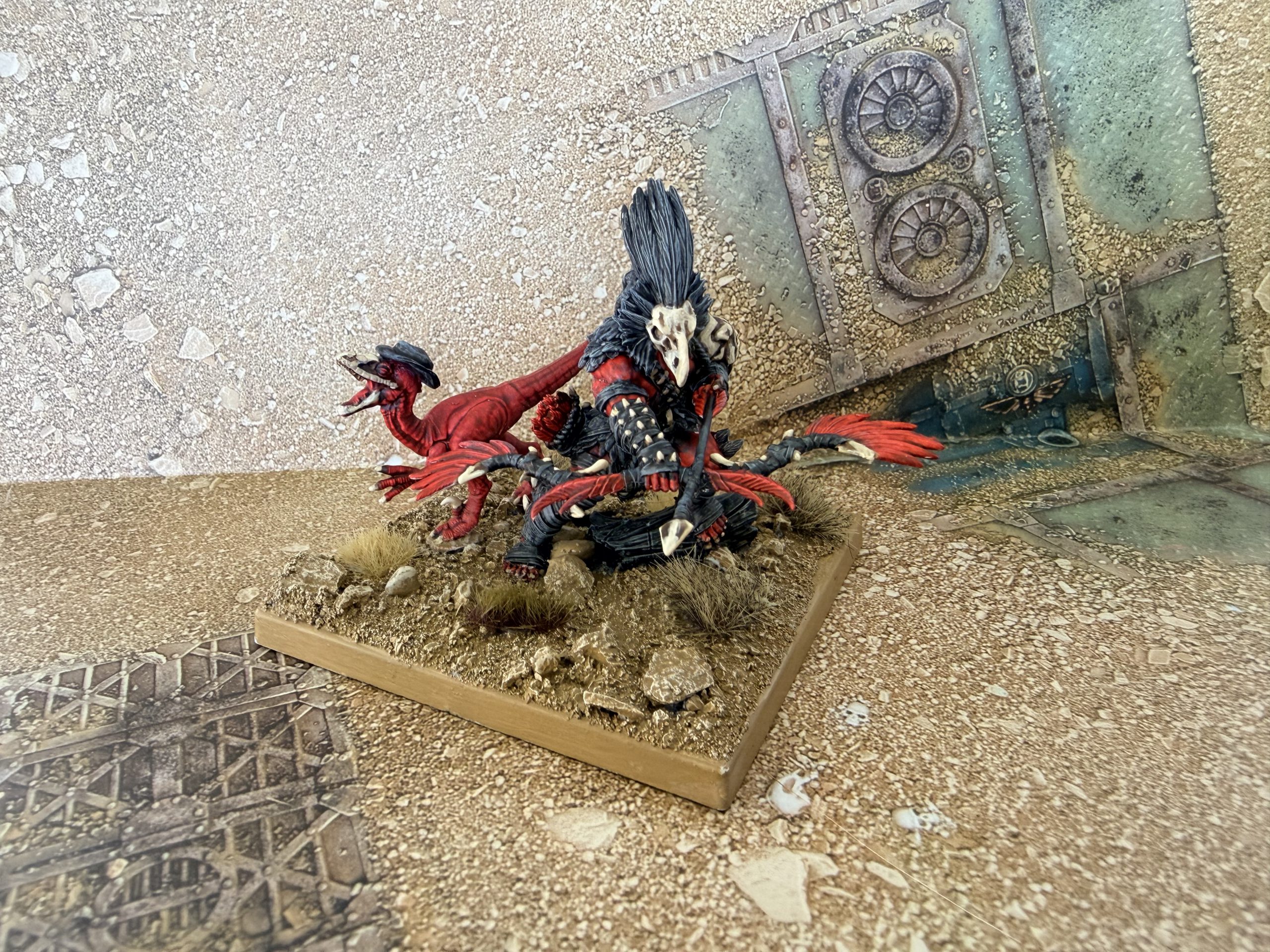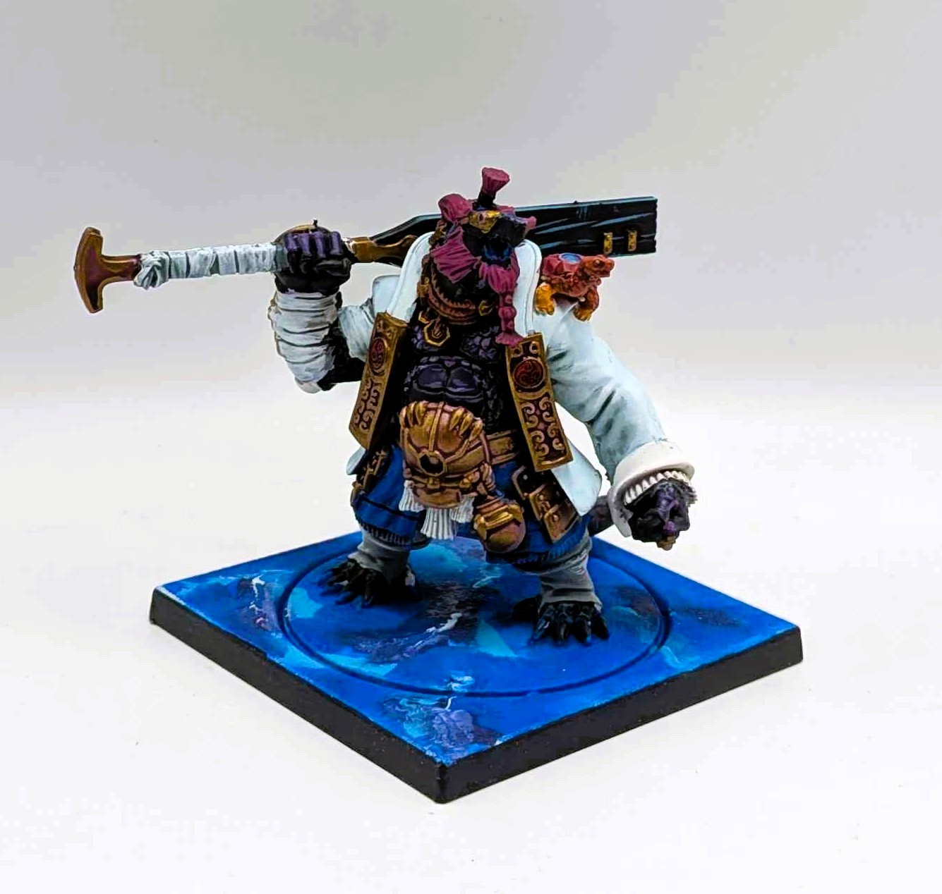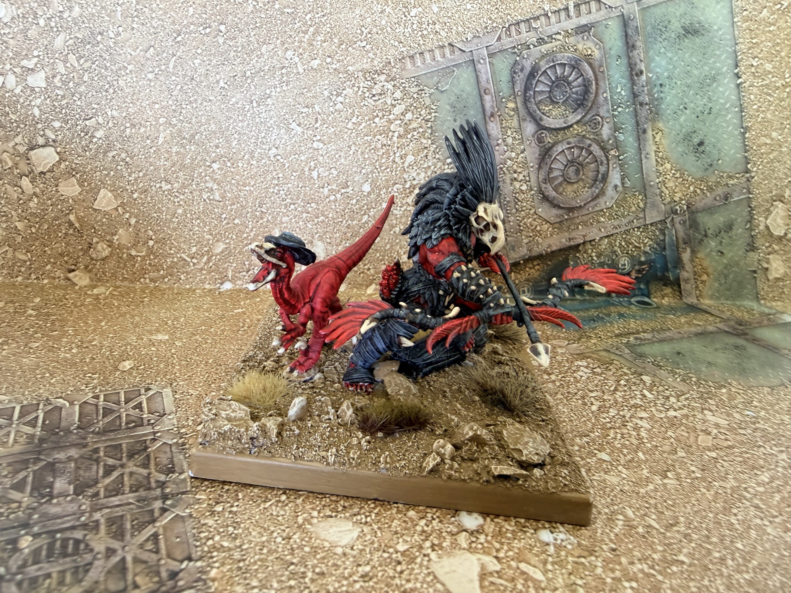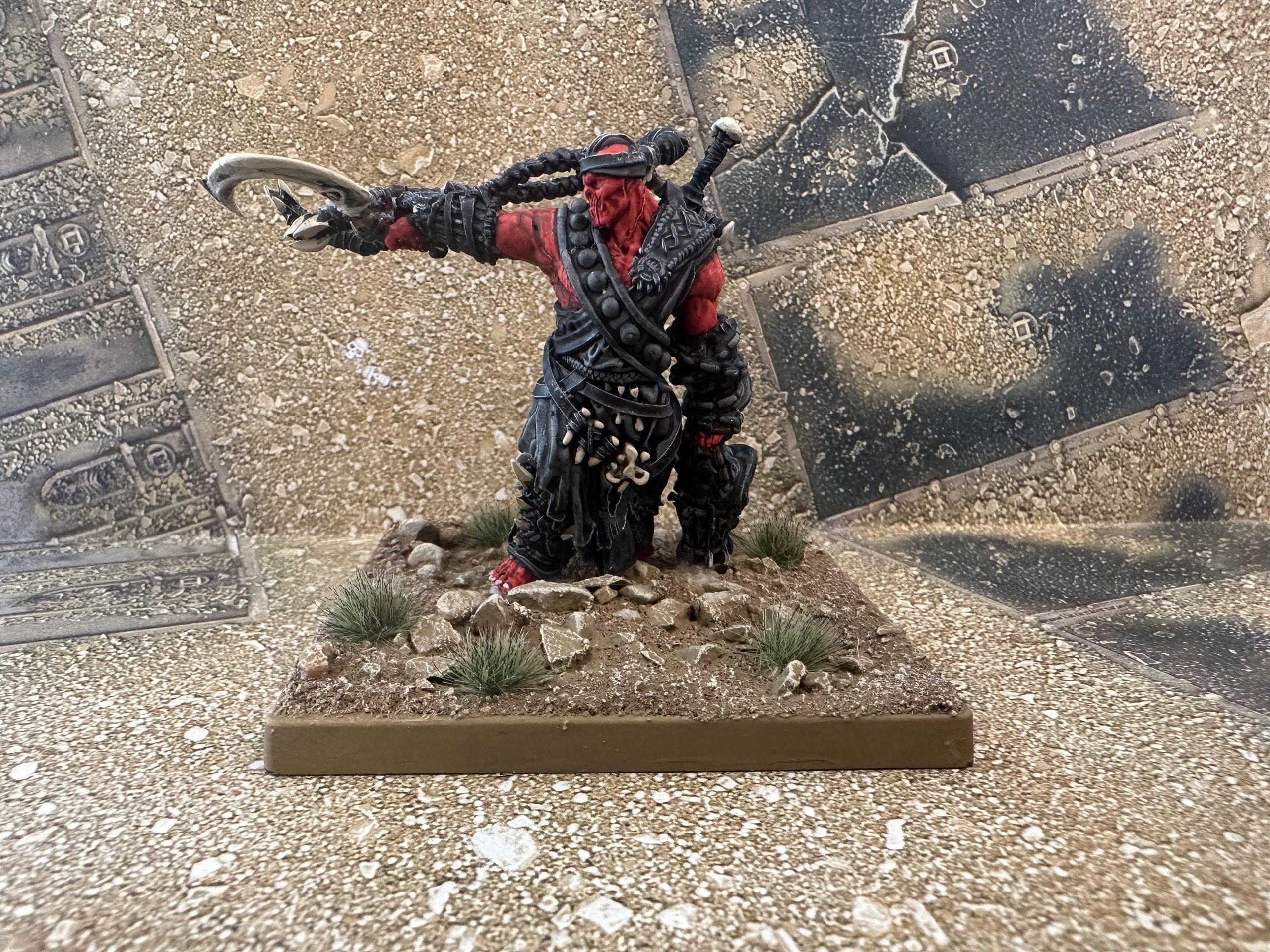 Magos Sockbert: Some models, you just stop and stare. Others, you gawp at and gossip excitedly with your friends. Some your eyes just move across without pause and some, like this goddamn monster, you swear at repeatedly. Design wise, the model is… fine. It’s a Predator. If you play W’adrhŭn, you probably have a bunch of the plastic model, and it’s a good model! It’s fun to paint, good scale, variety of textures, and it tells its own story. The story this guy tells is “if you pick the non-skull head version you are a coward, and also you should never, ever touch this model once it’s completed”.