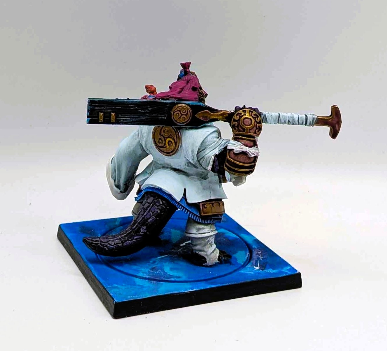 This story is bigger, has more pathos - much more Main Plot than Wako-San’s quest to find the One Piece. In the context of this campaign booklet it means that his is the weaker side. Wako cruises out of the mist with his boat and his ambitions and a bunch of things he wants to have happen. Nangenyua just so happens to be hanging out on site when a weird turtle guy shows up on his turf, so he ambushes him out of principle. He decides the Yoroni are demons the second he sees them and moves to attack without hesitation - which is fair enough, they are literal demons - but the result is he’s not really emotionally invested in anything that’s happening.