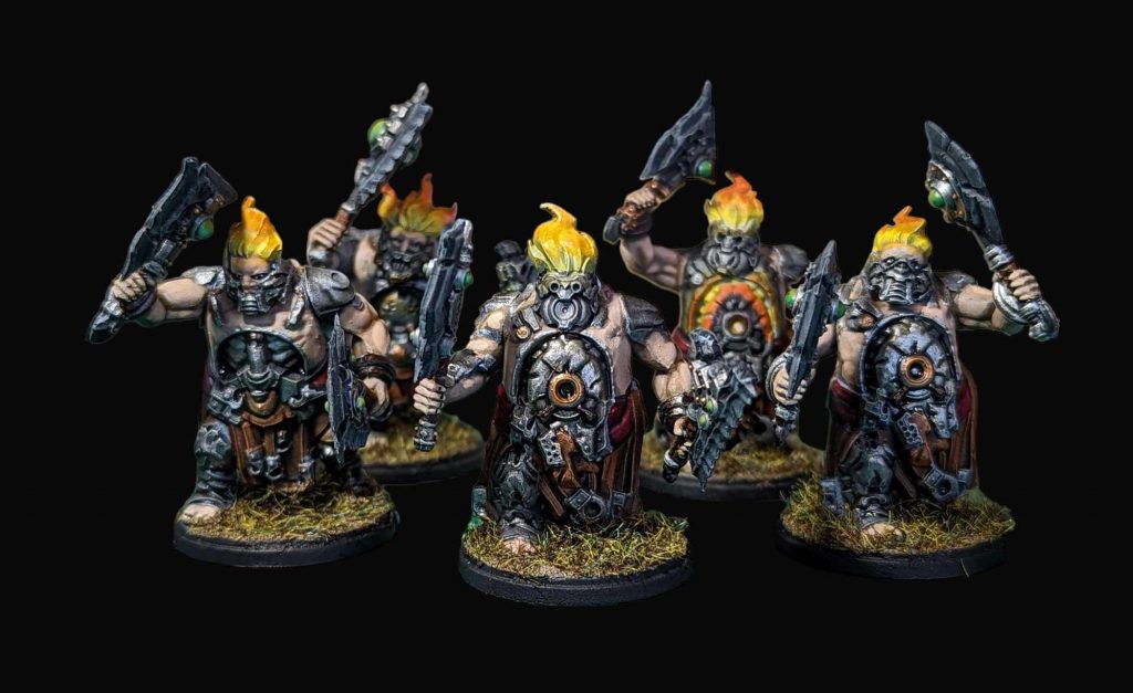 A mainstay regiment in Tempered Sorcerer and Steelshaper warbands (and a restricted regiment in Hold Raegh warbands), Fireforged are a simple, efficient, deadly unit. They’re wet noodles in melee, but they’re very durable, and their ranged attacks are extremely powerful. Their range is on the lower side at only 14”, but with Armor Piercing 2 and Barrage 4, they can put out a lot of damage if given the chance to aim and fire. For additional damage they can also be given a Flamecaster to give them the Torrential Fire rule, but given the challenges of moving them within 7”, I generally prefer to keep the unit cheap.