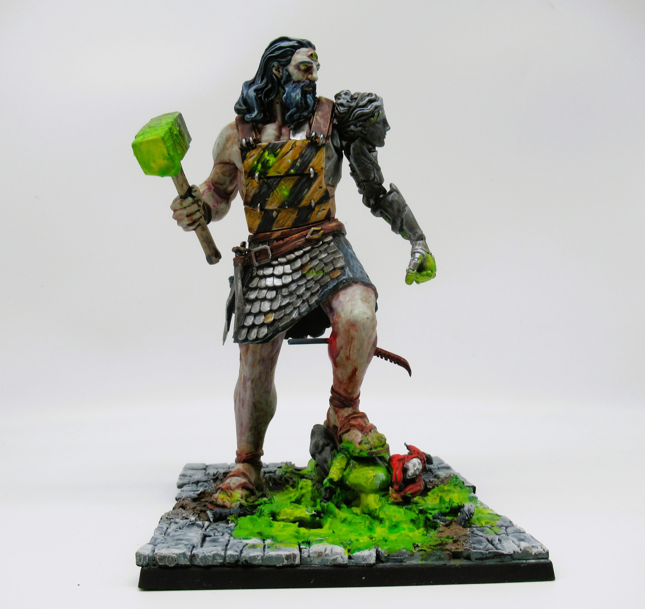 Some people like their wizards to be weedy, pale nerds who negotiate with the elements. I like my wizards to be buff, so jacked that even Gods, spirits and djinn bow to them in deference: Djacked, even. This sculpt is great, Yindak is here to make gains and gank monsters (and he’s all outta gains). The posing is quite dramatic, Yinbdak throwing an arm in the air as he summons or perhaps commands his elemental forces, the way his jewellery is sculpted helps communicate the motion of his gesture. The detail is, as ever with PB resin, gorgeous with lots of easily dry-brushed or washed sections. Despite the apparent detail and complexity of the model he’s very easy to paint. Not including assembly or zenithal undercoat, painting him took 2-3 hours and he looks pretty rad if you ask me (zenithal, contrast, highlight is the only way you’ll convince me to paint a rank-n-flank army these days). The musculature is a joy to work with, there’s enough definition in there that it’s easy to make Yindak look positively Süleymanoğlu-esque (google that one).